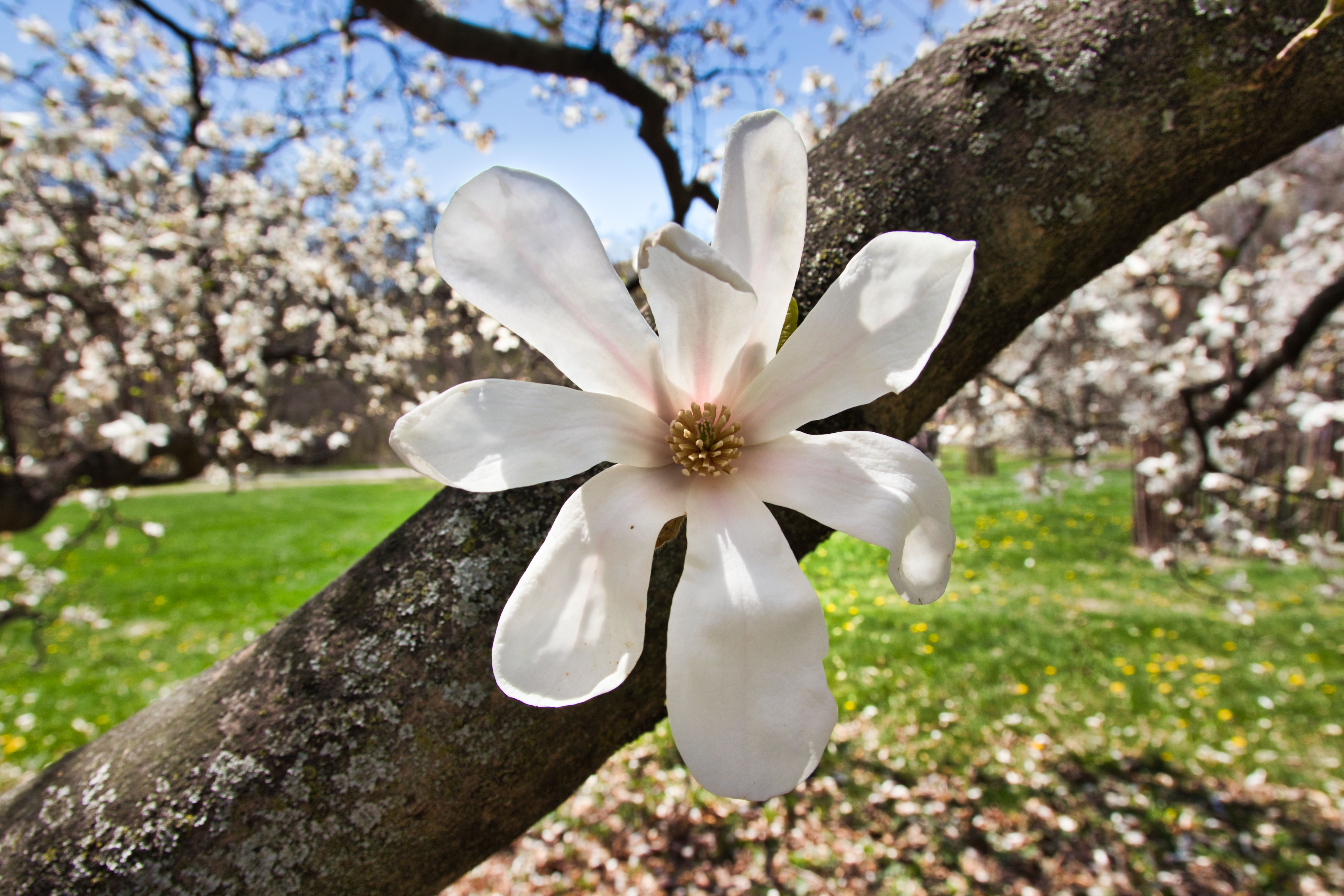 Whitnall Park is a county park located southwest of Milwuakee, WI. The park has a great nature center, hiking trails, cross-country skiing during the winter, a surprising amount of wildlife for being mostly surrounded by city, and a collection of trees that flower every spring. This photo is a close-up of one of those trees. The trees look absolutely stunning when in full bloom but unfortunately they don’t last much more than a week before the flowers fall off.