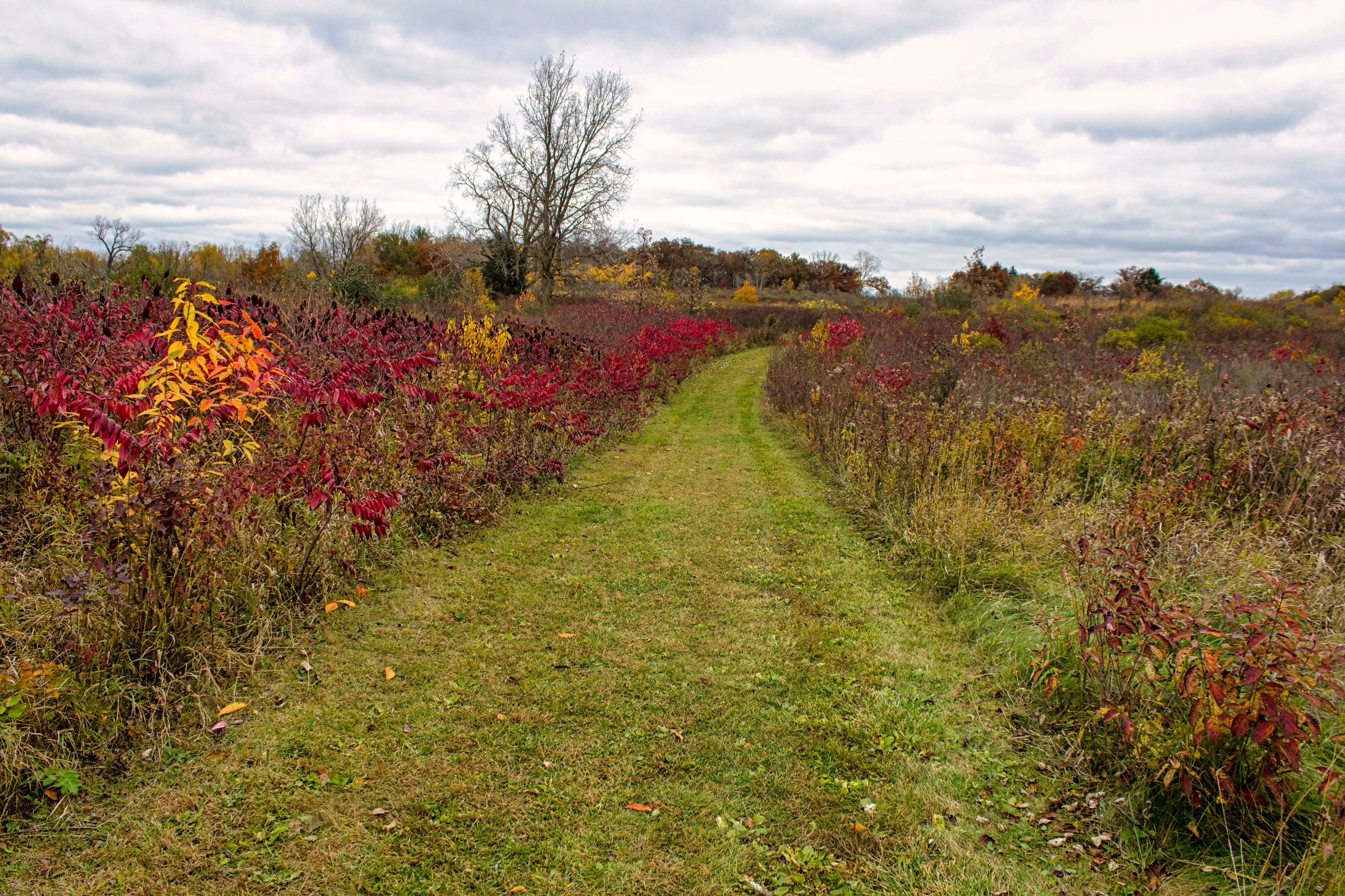 Spring is just arriving but it’s never to early to think about fall colors. I’m not a fan of cold days and short days but the changing of leaves during the fall is something I really enjoy. The thing about this photo that I like, and what makes it different from most of the other fall colors photos I have taken, is that the photo was taken later in fall after most of the trees had lost their leaves. The shrubs and other plants that grow closer to the ground still had their leaves and the brilliant reds stood out in contrast to the mostly brown colors elsewhere.